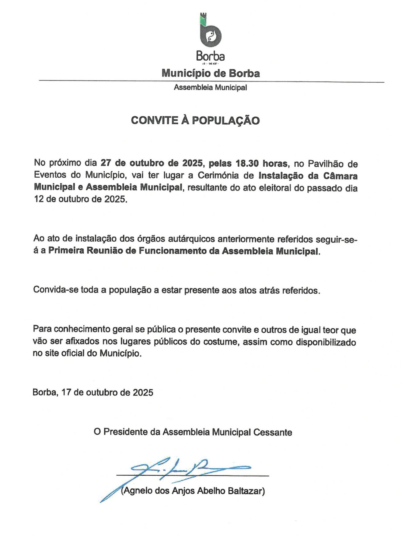 Cerimónia de Instalação da Câmara e Assembleia Municipal
