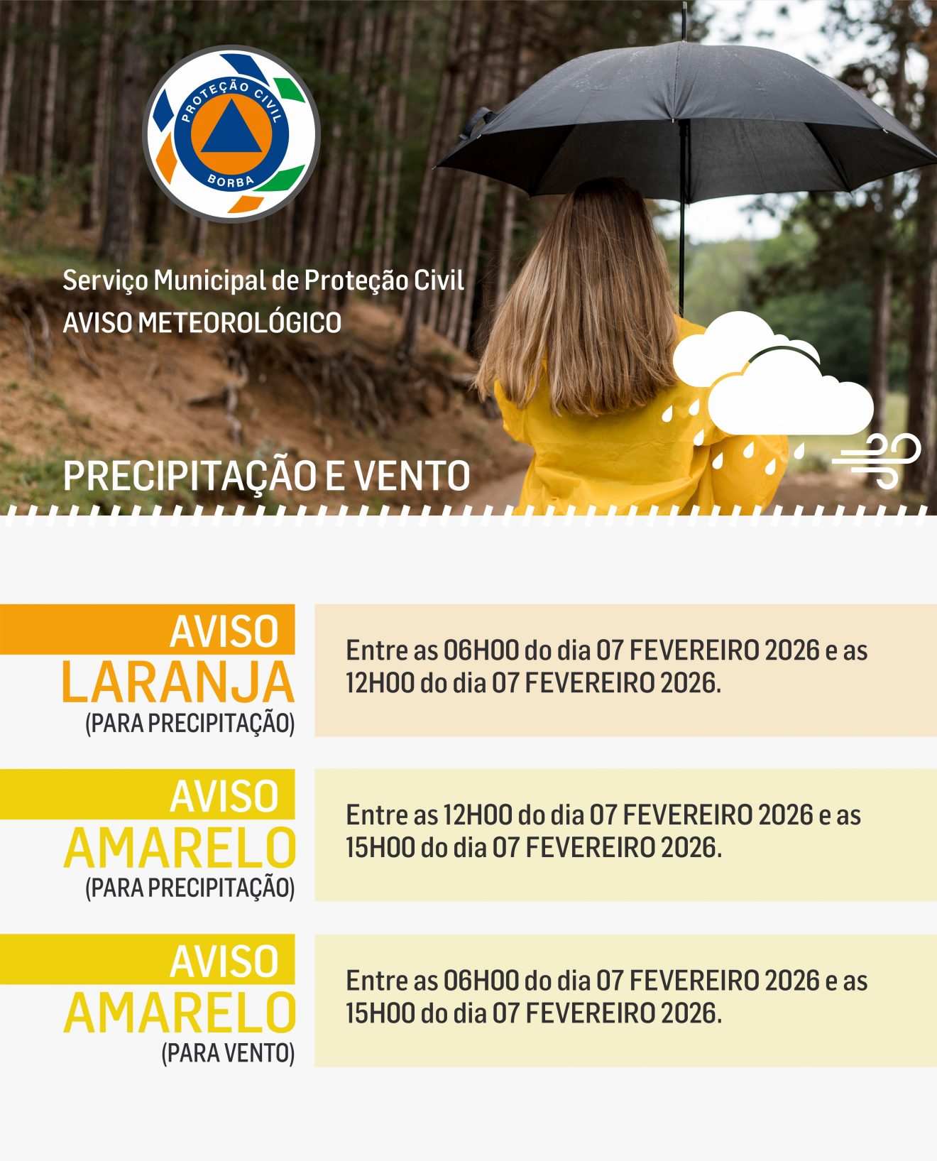 Início > MUNÍCIPE > Áreas de Ação > Proteção Civil > Avisos